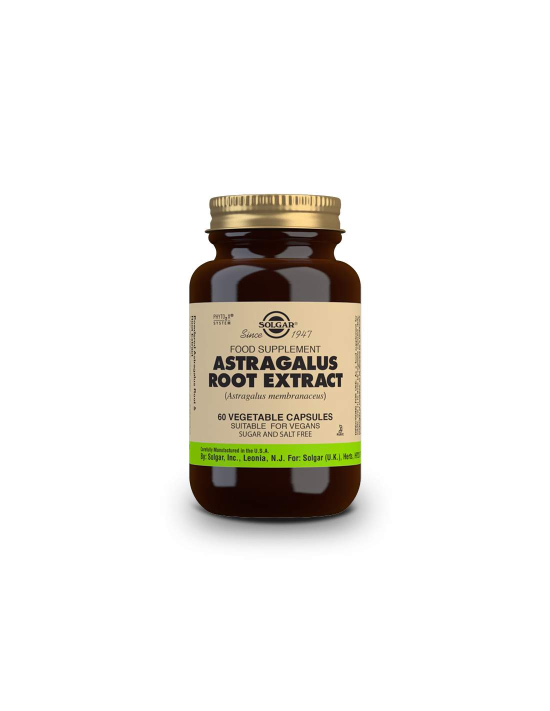 Raíz de Astrágalus en polvo, Extracto (2:1) de raíz de Astrágalus (Astragalus membranaceus). Antiaglomerante: estearato magnésico vegetal; Agente de carga: celulosa microcristalina; Cápsula vegetal: hidroxipropilmetilcelulosa.