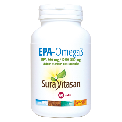 Descripción: Epa-Omega 33 es un complemento alimenticio a base de ácidos grasos esenciales omega- 3 que proporciona 660 mg de EPA y 330 mg de DHA por perla, siendo una fórmula con elevados niveles de ácidos grasos Omega-3 y presentados en la óptima proporción (2:1). El aceite se obtiene a partir de sardinas y anchoas salvajes por destilación molecular, un método de purificación que garantiza un aceite de grado farmacéutico libre de contaminantes ambientales.